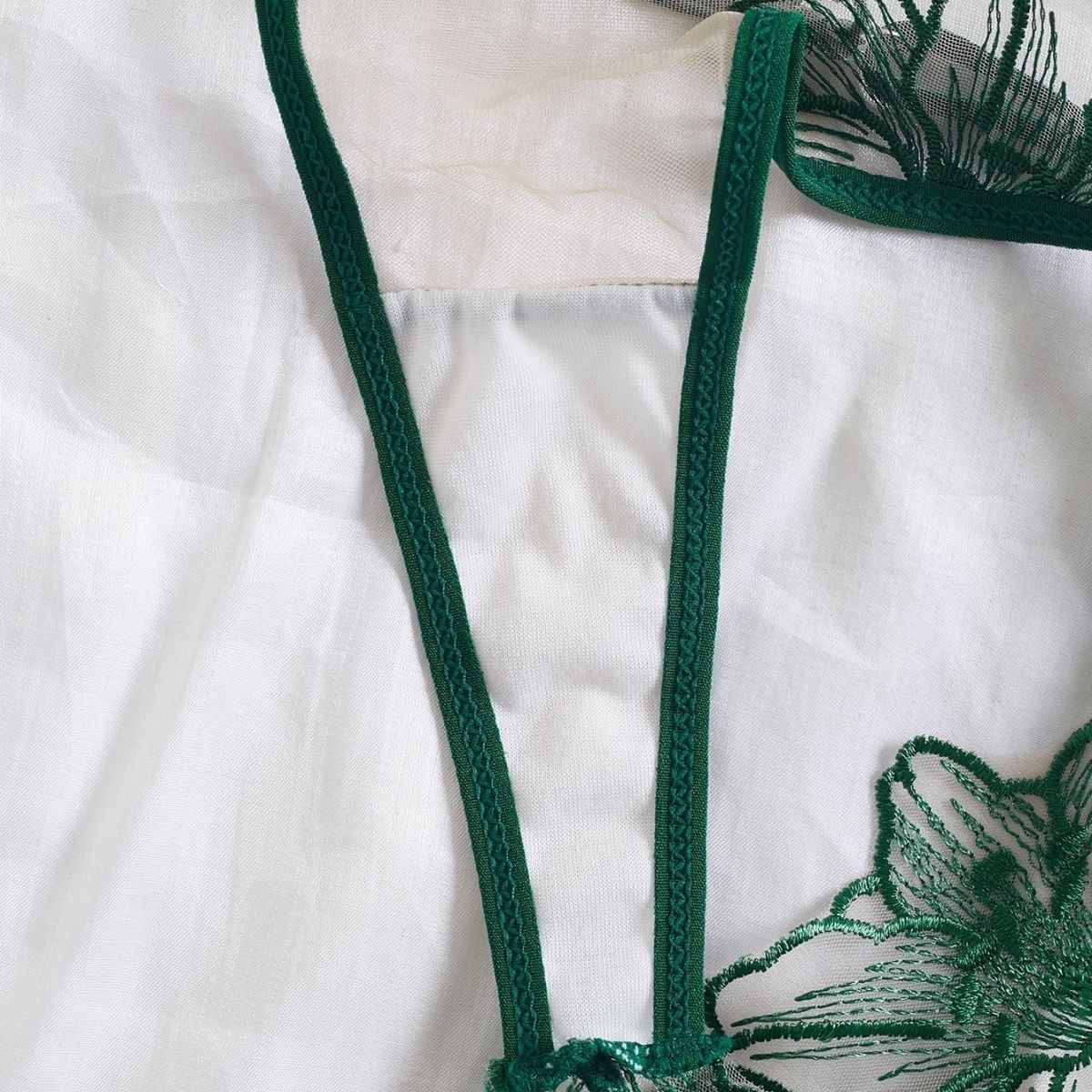 • Le String Graphique : Conçu avec des doubles brides blanches sur les hanches, il allie modernité et confort. Le panneau avant est richement orné des motifs floraux de la collection, créant un effet visuel de « bijou de peau ».
